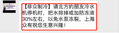 而立冬過后,北京平均氣溫已經達到10℃以下了,凌晨最低溫度甚至已經突破零度,達到結冰。內蒙古、黑龍江、山西等地的高原地區(qū)已經開始降雪了,隨著冬日深入,北京以及周邊華北地區(qū)肯定也會迎來大學紛飛。對于安裝了冷水機、除濕機等制冷設備的師傅而言,同樣需要要一套科學而嚴謹?shù)亩颈pB(yǎng)攻略,這樣才能保證機器安全過冬,在使用期內時刻保持高效安全的運行。